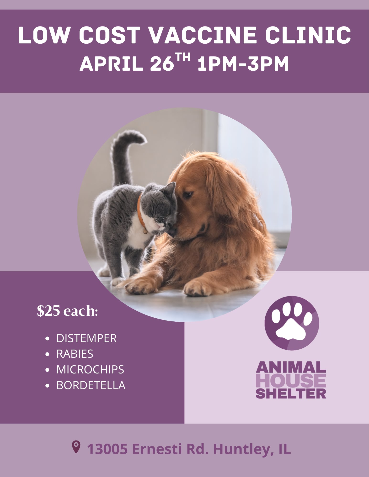Keeping your pets healthy and safe doesn’t have to be expensive! Join us for our low-cost vaccine clinic with microchipping available—a simple, affordable way to protect your furry family members.